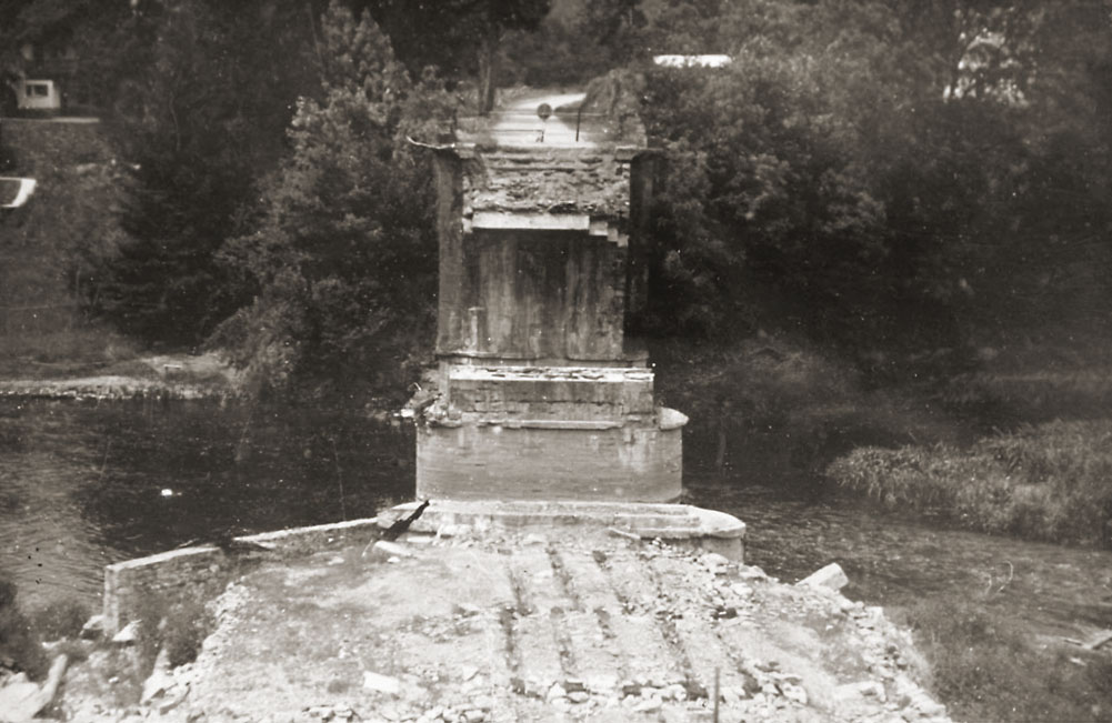 En 1940, les Français ont également détruit une arche du viaduc ferroviaire (en arrière-plan), qui sera rapidement réparée par les Allemands.